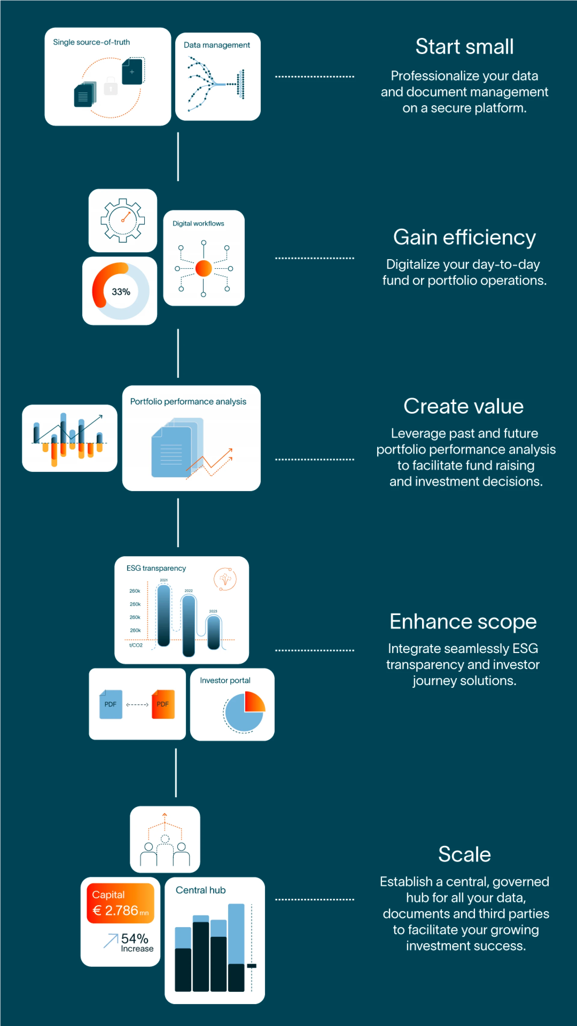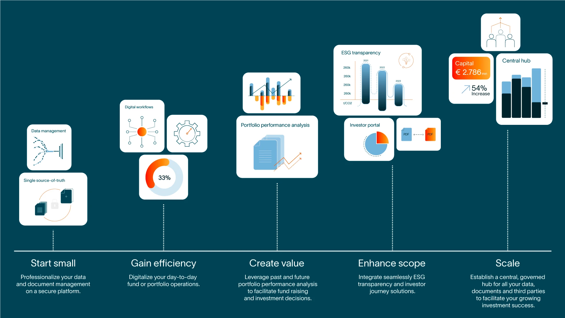 AssetMetrix consistently allocates more than 30% of its resources to research & development in its mission to digitalize and automate private markets’ data and document supply chains end-to-end. More than 240 person-years have already been invested to deliver the most sophisticated, yet straightforward-to-use platform in the industry, engineered in Germany. We automate data extraction and integration. We deliver consistent, actionable data sets, enriched by high-end performance computation and analytics engines. We engage stakeholders in end-to-end digital workflows with seamlessly integrated document logistics as their backbone. And we deliver all of this on intuitive, tailorable, cutting-edge web interfaces.